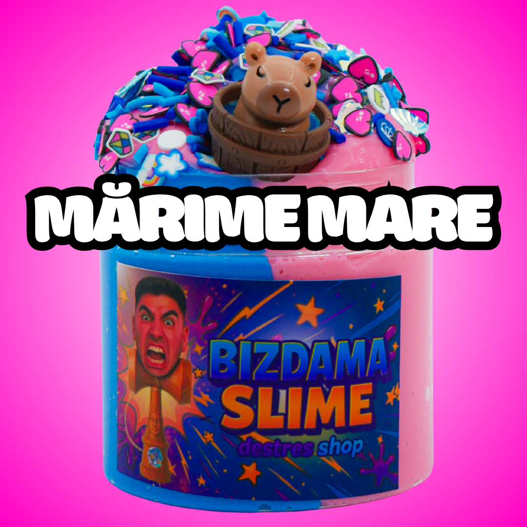 1 borcănaș de slime BIZDAMA SLIME. Textură glossy butter, groasă, elastică, foarte netedă la întins.